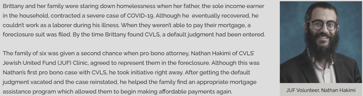 Chicago Volunteer Legal Services, In First Pro Bono Case with CVLS, JUF Volunteer Saves Family Home, Mar. 26, 2024. Link PDF